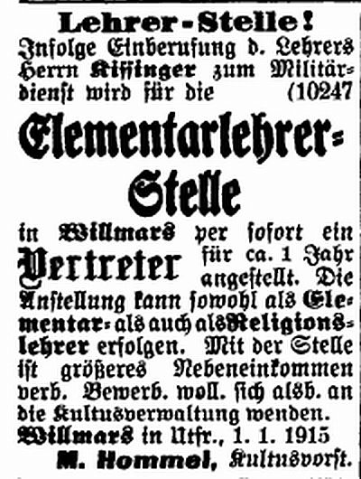 (geb. in Willmars, vor 1914 in Unsleben wohnhaft, gef. 14.11.1916), Herbert