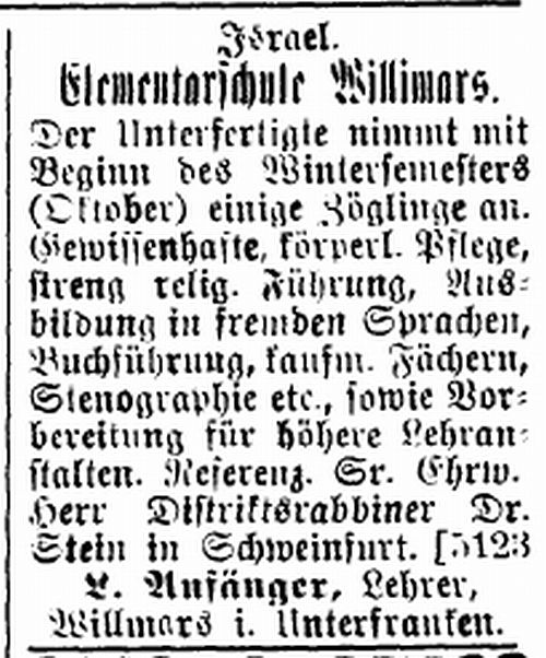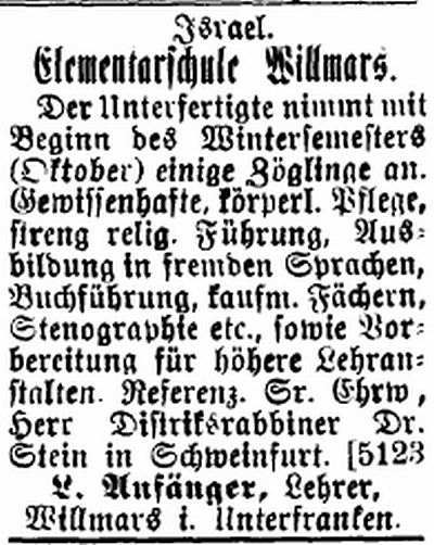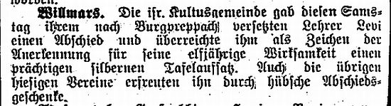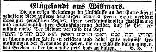 In Willmars bestand bis 1941 eine jüdische Gemeinde. Ihre