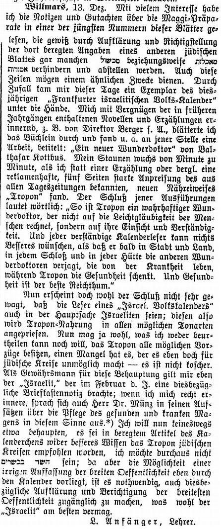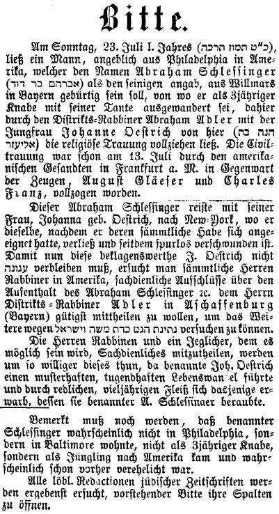bekannt; Salomon Anfänger 1884 bis 1895 (danach in
