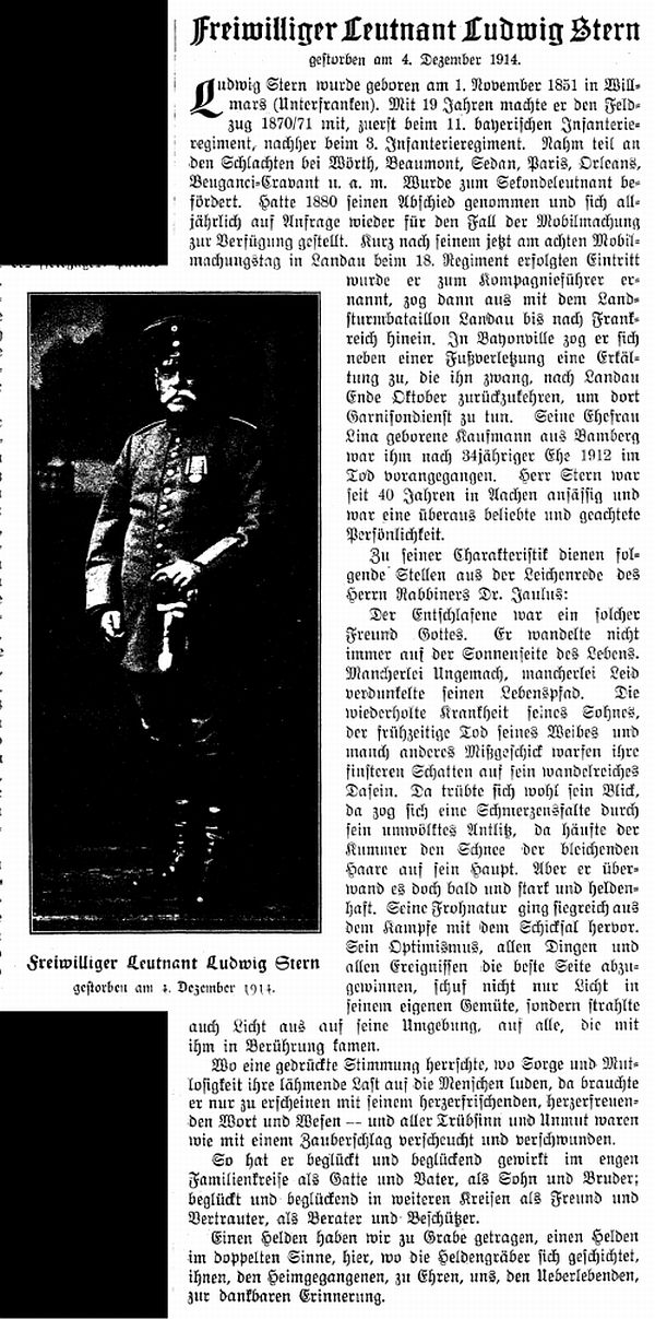 Im Ersten Weltkrieg fielen aus der jüdischen Gemeinde Siegfried Frank