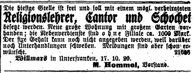 angestellt, der zugleich als Vorbeter und Schächter tätig war.