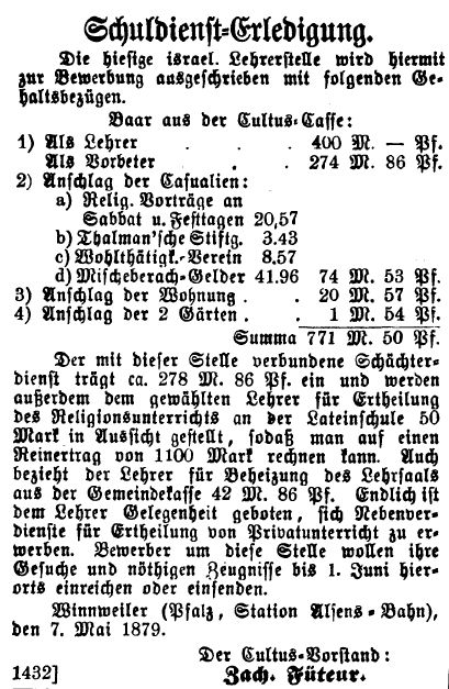 Ausschreibungen der Stelle unten). Erstmals wird 1808 der jüdische