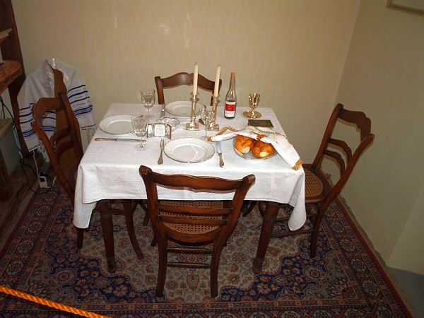 Schabbatkerzen, Kidduschbecher, Wein, Salz, Gebetbuch (Siddur) |