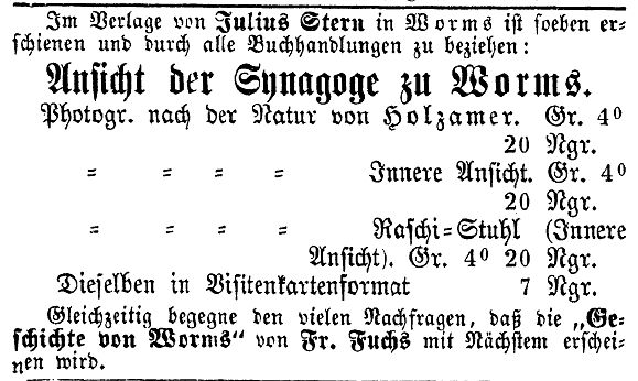 insbesondere zur Synagoge und dem gottesdienstlichem Leben in Worms in jüdischen