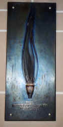 Wolf Spitzer aus Speyer mit Hinweistafel